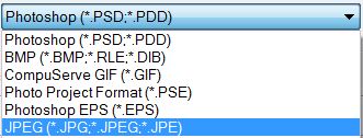 We are going to save it as a JPEG, click on the down arrow and choose JPEG (*.JPG,*JPEG,*.JPE)