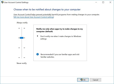 Notify me only when apps try to make changes to my computer (do not dim my desktop)