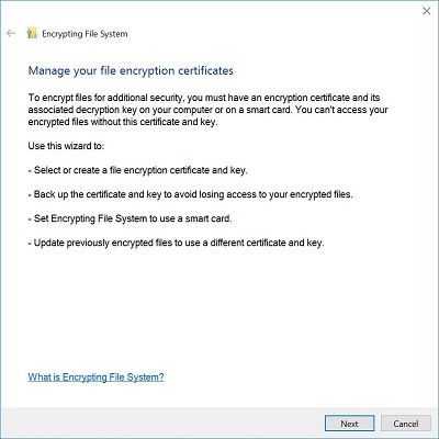 Click Manage your file encryption certificates